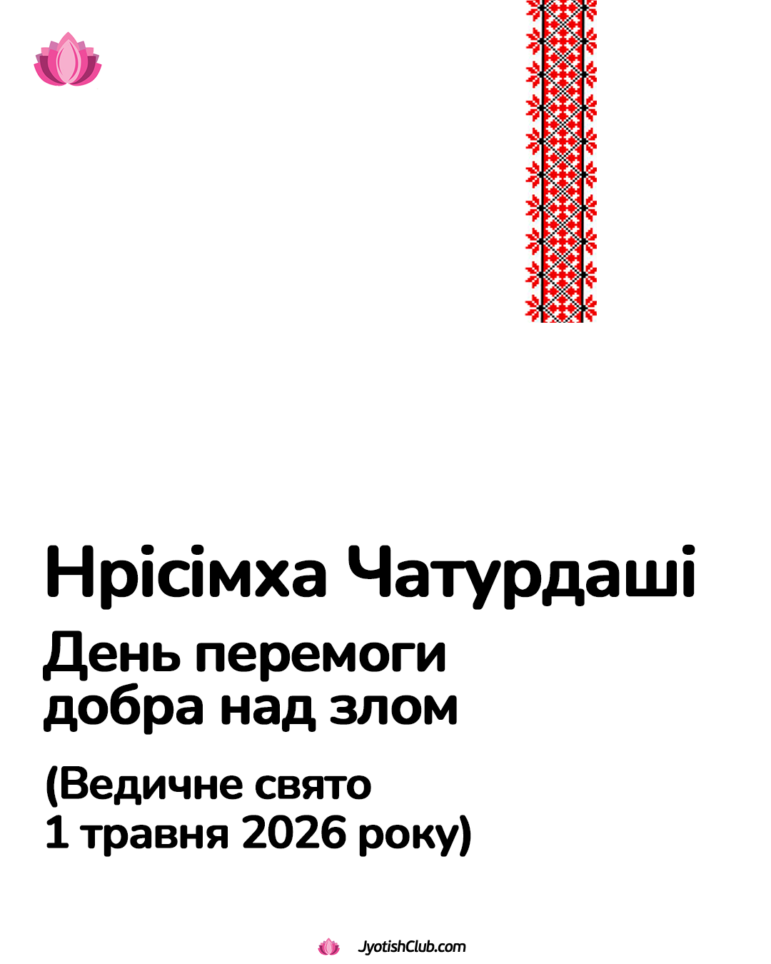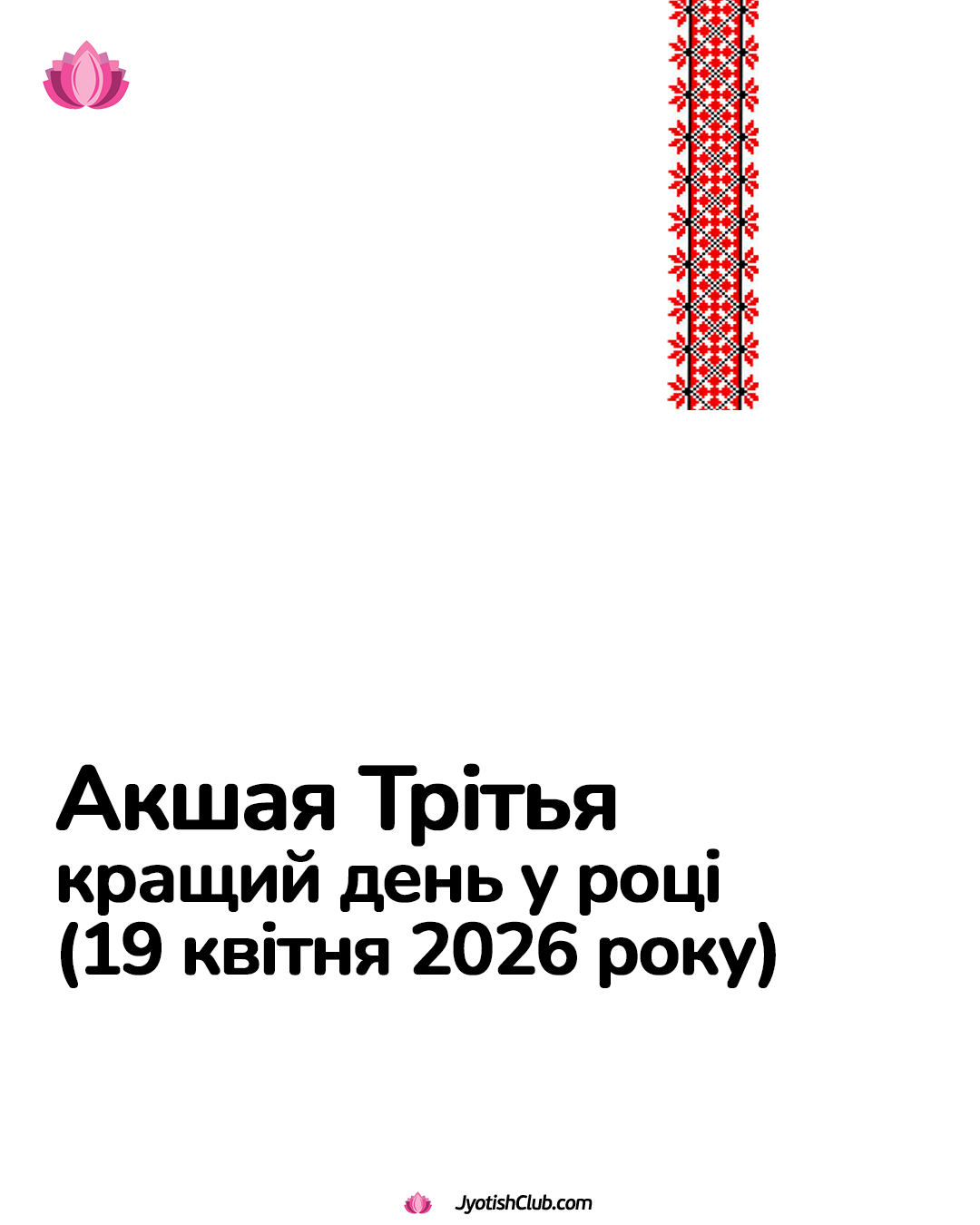 Друзі, у неділю, 19 квітня 2026 року, нас чекає Акшая Трітья — астрологічно сприятливий день, який дослівно перекладається як «найкращий день у році». Акшая Трітья згадується в багатьох Ведичних писаннях. Слово «Акшая» перекладається з санскриту як «незнищенний», «непереможний». А «Трітья» (що звучить подібно до нашого слова «третина») означає третій день Місяця (тітхі), який сприятливий для […]